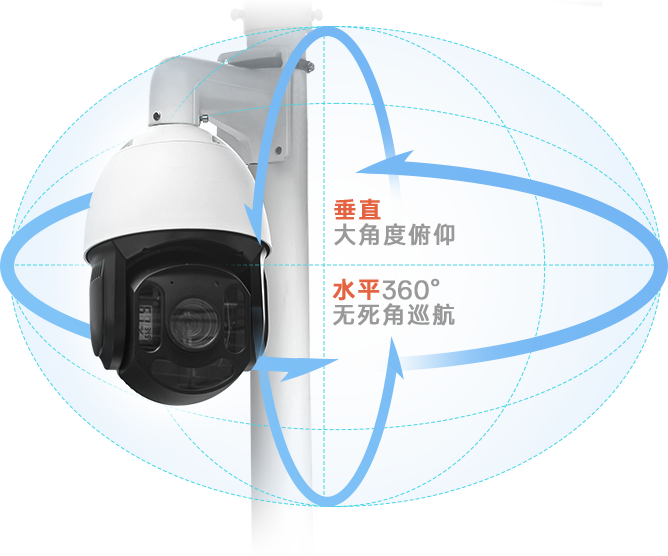 搭載高性能360°水平旋轉云臺,垂直大角度俯仰,多角度靈活調節(jié),自動遠程控制,無死角巡航,突破空間限制,輕松覆蓋復雜場景。